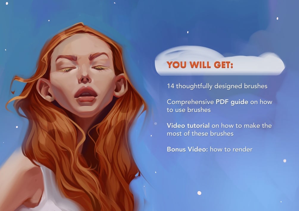 14 brushes, 1 Ultimate PDF Guide, 1 Video tutorial